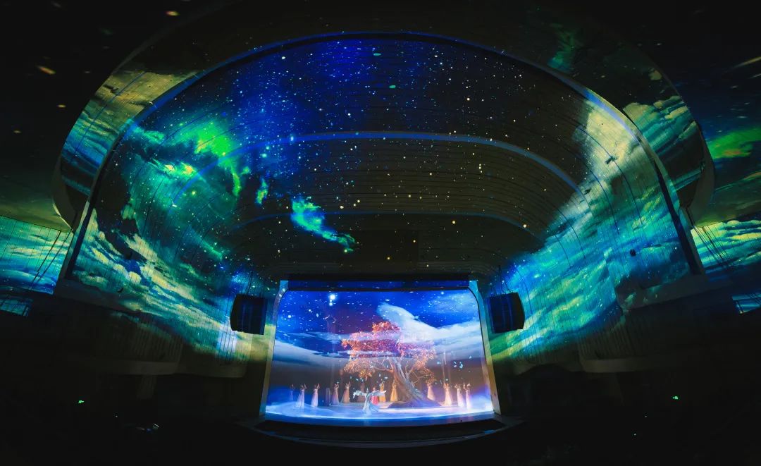 這是一場(chǎng)奇幻的觀演盛宴,360度旋轉(zhuǎn)舞臺(tái)移步換景,每個(gè)角度都是全新的揚(yáng)州;全穹頂投影技術(shù),讓每位觀眾都沉浸式地人在劇中;5.1聲道的環(huán)繞,讓每一句臺(tái)詞都如同在你身邊耳語(yǔ).....