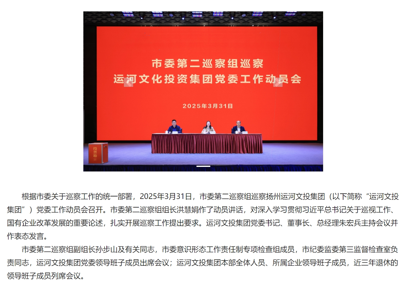 市委第二巡察組巡察揚(yáng)州運(yùn)河文投集團(tuán)黨委工作動(dòng)員會(huì)召開(kāi)